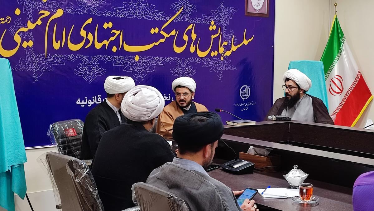 نشست خبری سلسله همایشهای بینالمللی مکتب اجتهادی امام خمینی (ره) با محوریت خطابات قانونی در سال نخست، ظهر امروز در مؤسسه آموزش عالی حوزوی ائمه اطهار علیهم السلام مشهد با حضور حجج اسلام مهدی رضایی، معاون علمی حوزه علمیه خراسان، محسن افضل آبادی مدیر مؤسسه حوزوی ائمه اطهار علیهم السلام، حجتالاسلام ابوالفضل فروتن، دبیر اجرایی همایش و تعدادی از مسئولان نهادهای حوزوی مرتبط با این رویداد، برگزار شد.